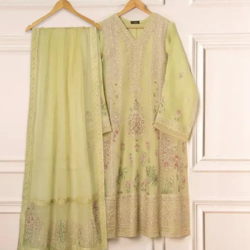 3 Piece Pure Chiffon Embroidered Suit – As shown in the Product Information