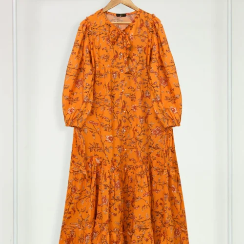 AGHANOOR PRINTED CAMBRIC TIER LONG SUMMER DRESS