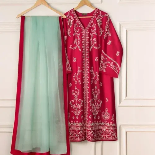 3 Piece – Pure Organza Embroidered Suit Fabric Shirt