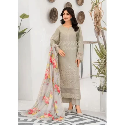 3 Piece Pure Chiffon Embroidered Suit – As shown in the Product Information