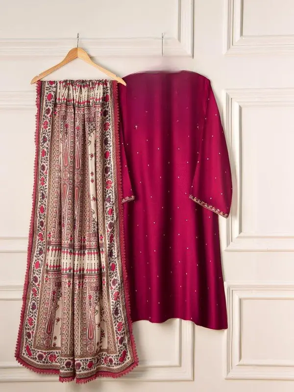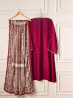 3 Piece- Pure Cotton Net Embroidered Suit S110846
