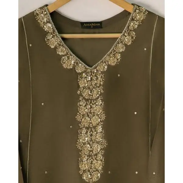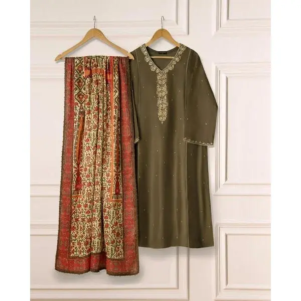 3 Piece- Pure Cotton Net Embroidered Suit Fabric Silk
