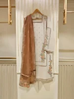 Introducing our elegant embroidered cotton net shirt with pants and dupatta, a perfect choice for those who appreciate intricate detailing and graceful style. This shirt is crafted from high-quality cotton net fabric, offering a lightweight and luxurious feel that allows you to feel comfortable and chic throughout the day.