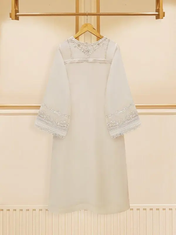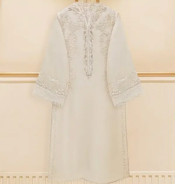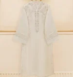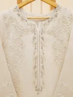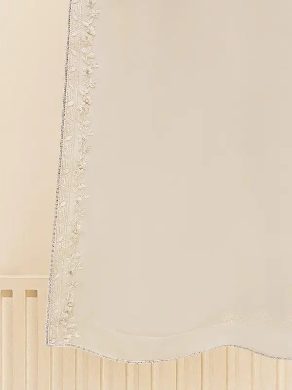Elevate your style with our off white embroidered organza straight shirt crafted with utmost care and attention to detail. The shirt features intricate embroidery on the front and sleeves, adding a touch of timeless charm.