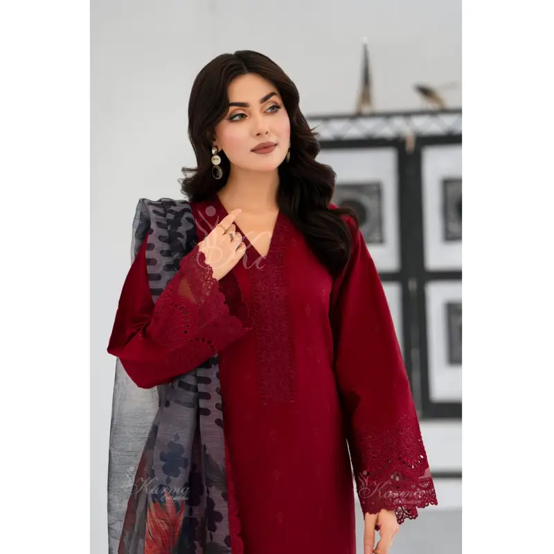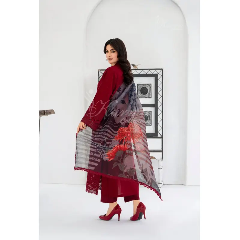 Khaddi Lawn Work; Print Dupatta and embroidery