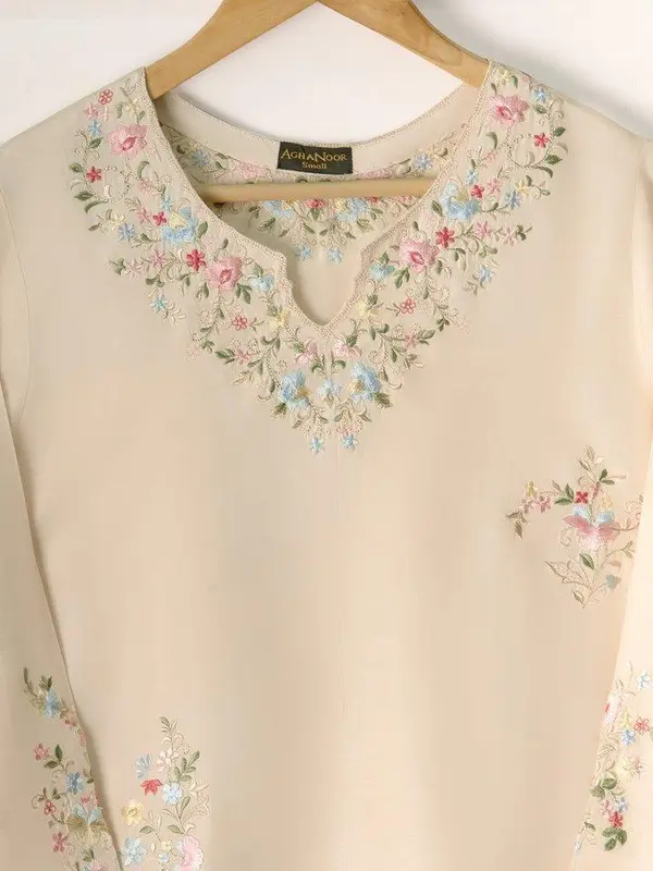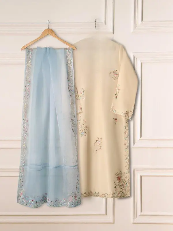 Be the first to review “Aghanoor 3 Piece- Pure Korean Silk Embroidered Suit Fabric Organza”