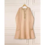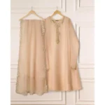 Aghanoor 3 Piece – Pure Organza Embroidered Suit Elevate your style with our brown jardousi organza straight shirt crafted with utmost care and attention to detail. The shirt features intricate embroidery on the front and sleeves, adding a touch of timeless charm.