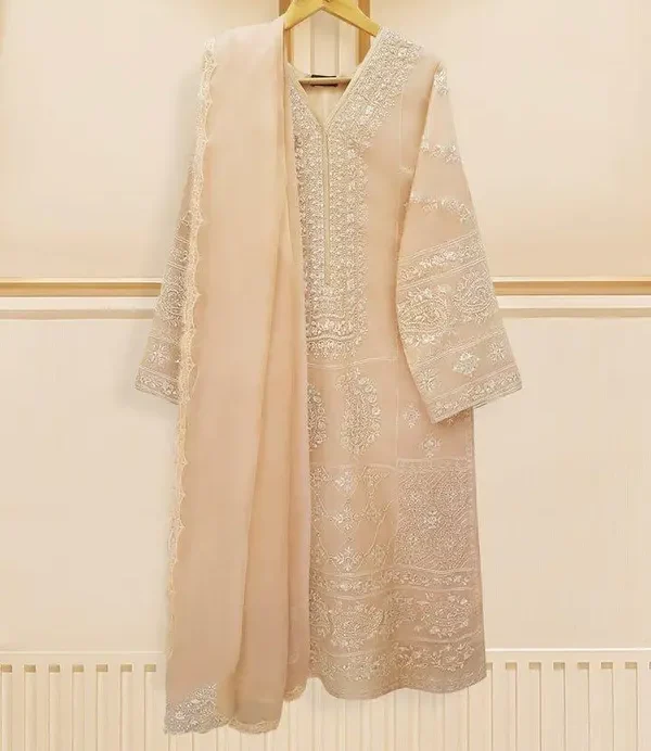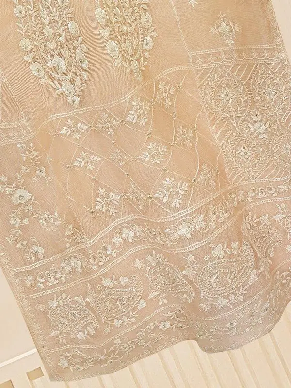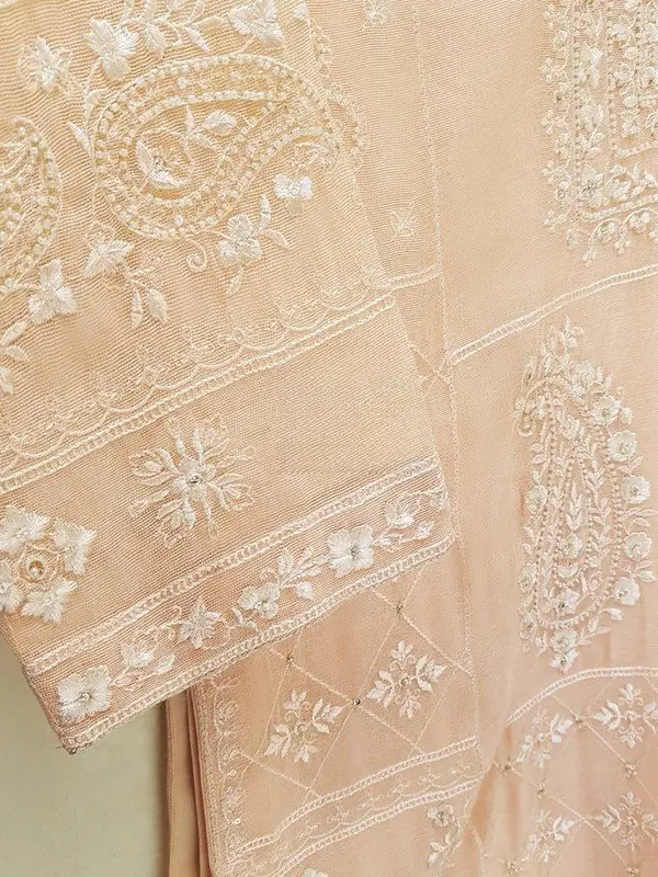 Introducing our elegant, embroidered cotton net shirt with pants and dupatta, a perfect choice for those who appreciate intricate detailing and graceful style. This shirt is crafted from high-quality cotton net fabric, offering a lightweight and luxurious feel that allows you to feel comfortable and chic throughout the day.