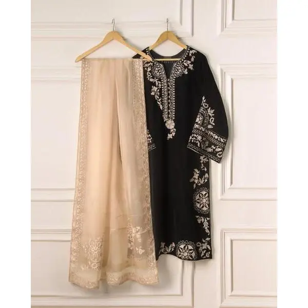 Embroidered Velvet Suit – 3 Piece Set with Embroidered Design and Comfortable Fabric