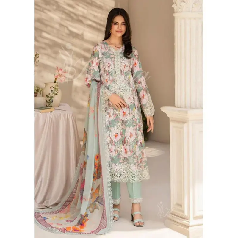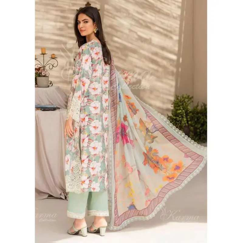 This design brings a touch of sophistication, while the color printed dupatta adds a pop of vibrancy. Make a statement and feel confident in this must-have piece.