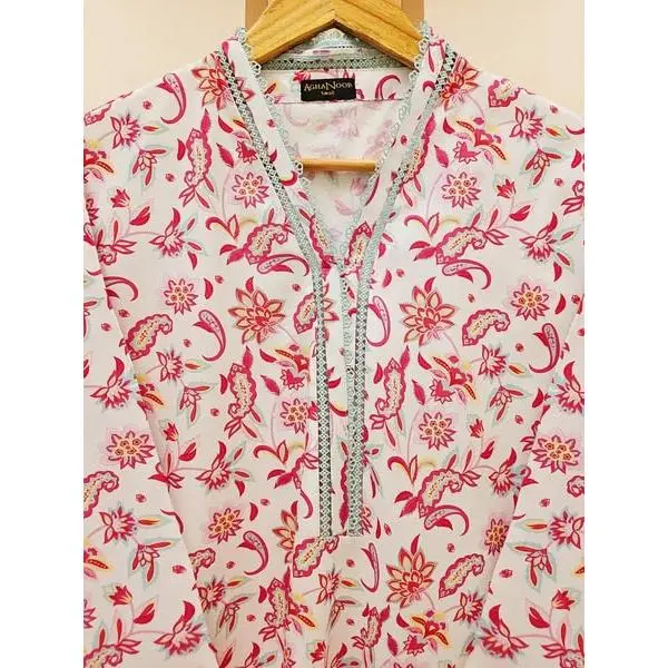 Introducing Aghanoor’s vibrant and fashionable printed lawn shirt with pant perfect for adding a touch of elegance and style to your wardrobe. Made from high-quality lawn fabric, this shirt offers comfort and breathability, making it an ideal choice.