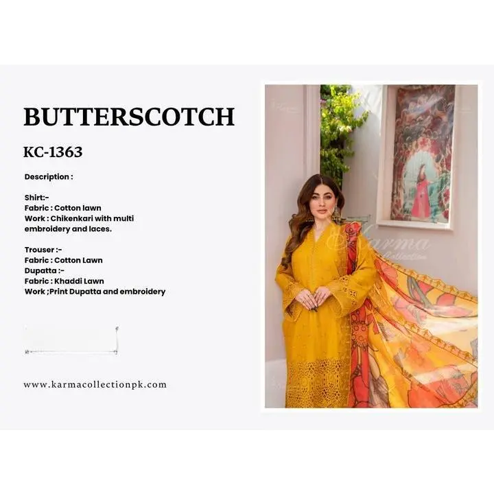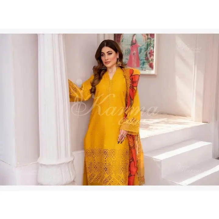 Lawn Material: Crafted from high-quality lawn fabric, this kameez offers a soft and comfortable feel, perfect for all-day wear.